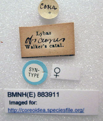 Lybas obscurus Dallas, 1852 (Syntype: female) – BMNH London – (CC BY-NC 3.0) Attribution: The Natural History Museum, London. Photograph taken by Tristan Bantock.
