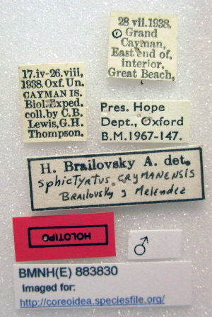 Sphictyrtus caymanensis Brailovsky & Meléndez, 1989 (Holotype: male) – BMNH London – © The Trustees of the Natural History Museum, London. Photograph taken by Tristan Bantock.
